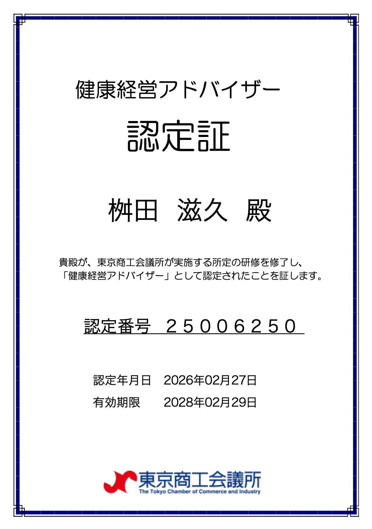 僕も指導者の一人を目指し、「健康経営アドバイザー」を取得しました!